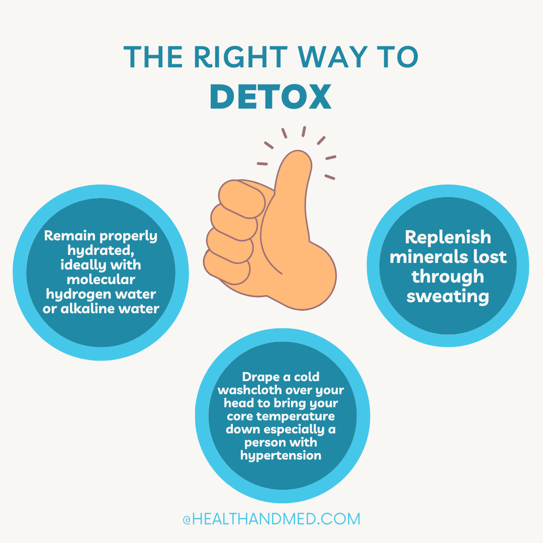 Whenever you detox your body, especially with the use of a wet/dry heat sauna, it is important to: